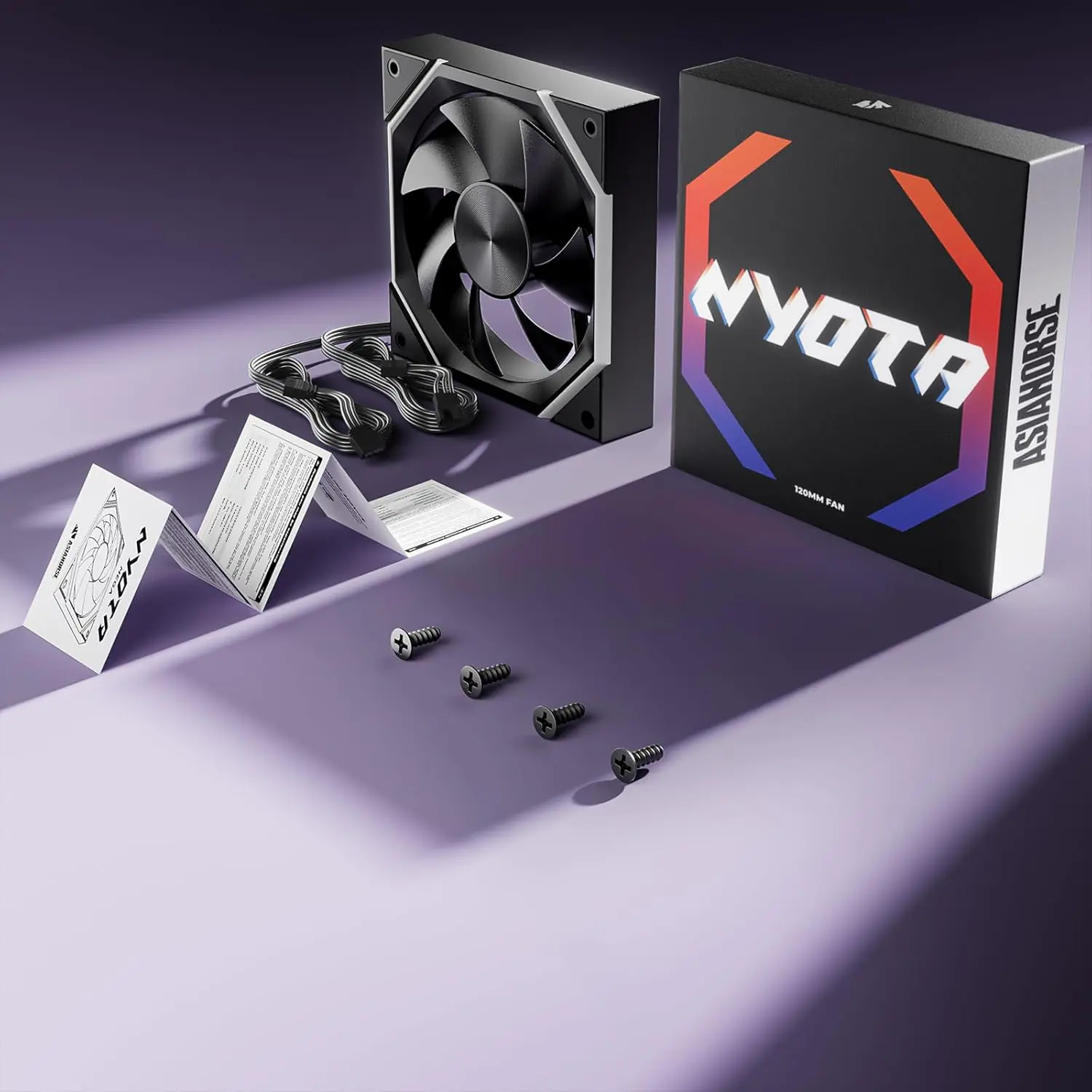 AsiaHorse NYOTA ARGB 120mm Case Fan – Forward Black, PWM 800–2000RPM, 61.5 CFM Airflow, Quiet 29dB, Hydraulic Bearing, Customizable ARGB Lighting, 4-Pin