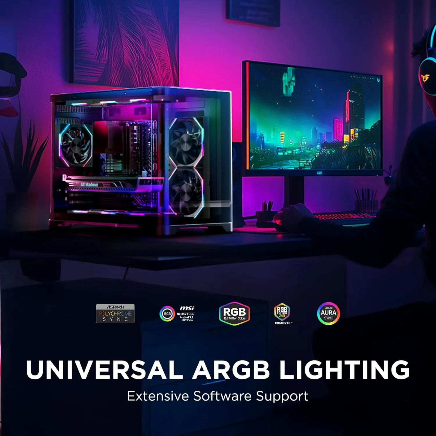 - Brilliant ARGB Lighting: Equipped with patented OSKAR light beads for vibrant, smooth, and customizable RGB effects. Syncs easily with motherboard software.