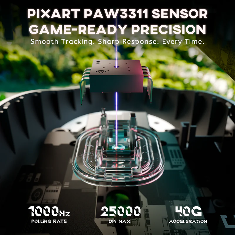 Built for speed and control, the G3’s ultra-light 59g body minimizes hand fatigue and enables faster flicks and smoother tracking during long gaming sessions. - High-Precision PixArt PAW3311 Sensor