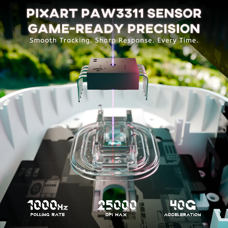 Built for speed and control, the G3’s ultra-light 59g body minimizes hand fatigue and enables faster flicks and smoother tracking during long gaming sessions. - High-Precision PixArt PAW3311 Sensor