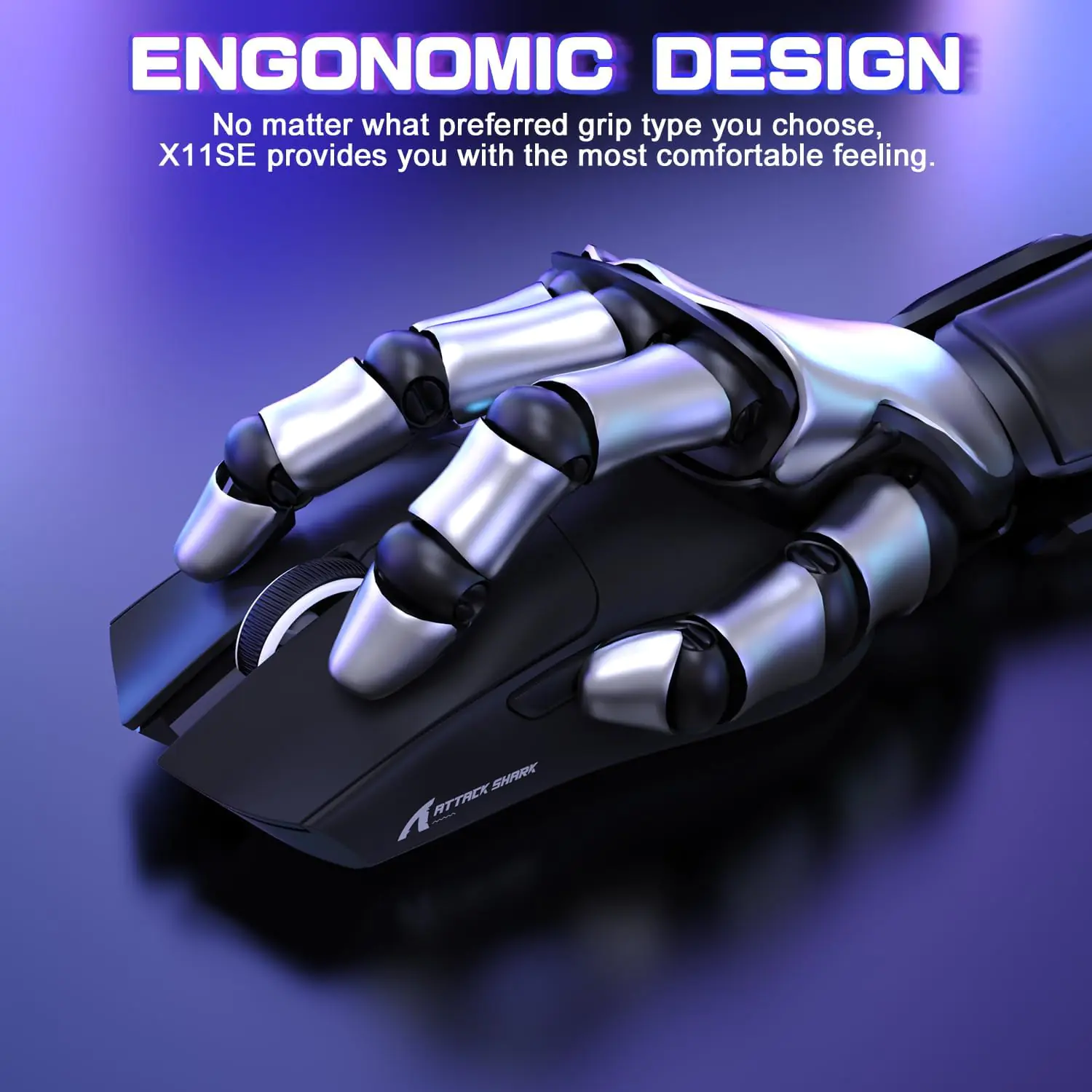 ATTACK SHARK X11-SE Ultra-Light Gaming Mouse – 59g Ergonomic Design, Tri-Mode BT5.2/2.4G/Wired USB-C, PixArt PAW3311 Sensor, 22,000 DPI, 5 Programmable Buttons