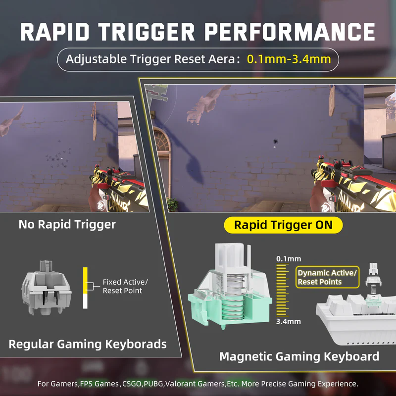 - 0.01mm Rapid Trigger Accuracy: Instant keystroke registration and reset for pro-level performance in FPS, rhythm, or fast-paced games.