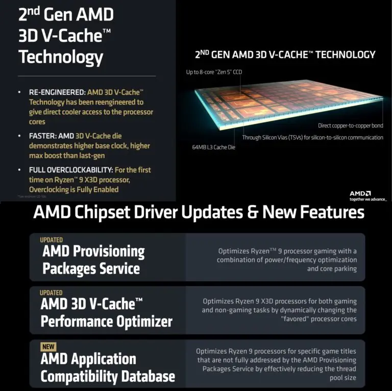 - 2nd Gen AMD 3D V-Cache™ Technology: Optimized for gaming performance by increasing the L3 cache, reducing latency and improving throughput.