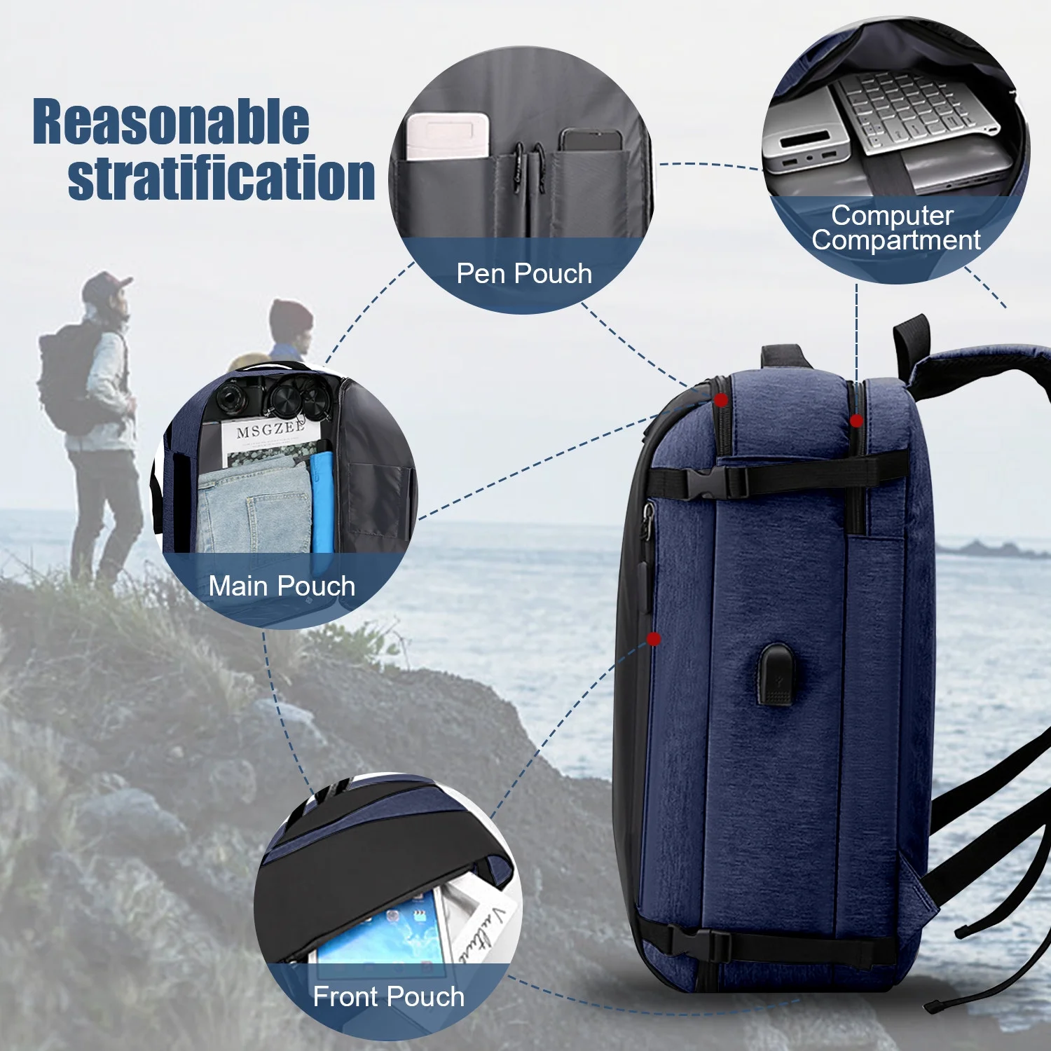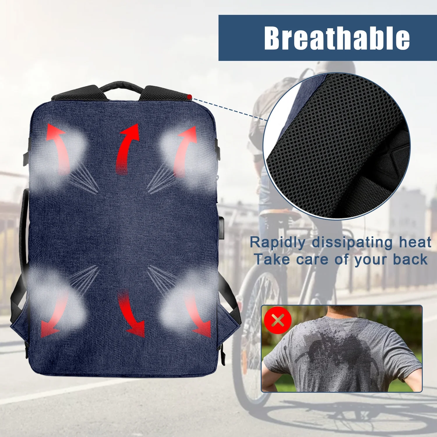 Equipped with durable zippers and a streamlined layout to safely store your 15.6″ laptop, phone, documents, and more — perfect for travel, school, or business. - USB Charging On-the-Go