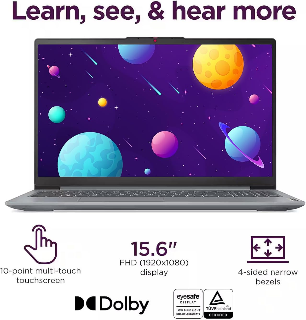 - Dolby Audio Stereo Speaker System : User-facing stereo speakers rated at 1.5W x2 and tuned with Dolby Audio™ for clearer dialogue and balanced sound.
