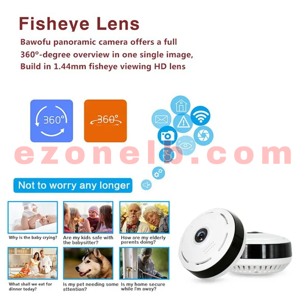 360 Degree INFRARED SURVEILLANCE Camera – HD 2304×1926 P – Wi-Fi Globe Panoramic Camera – Fish eye – IR Night Vision Home Security Surveillance CCTV Cam FROM EXPERT ZONE