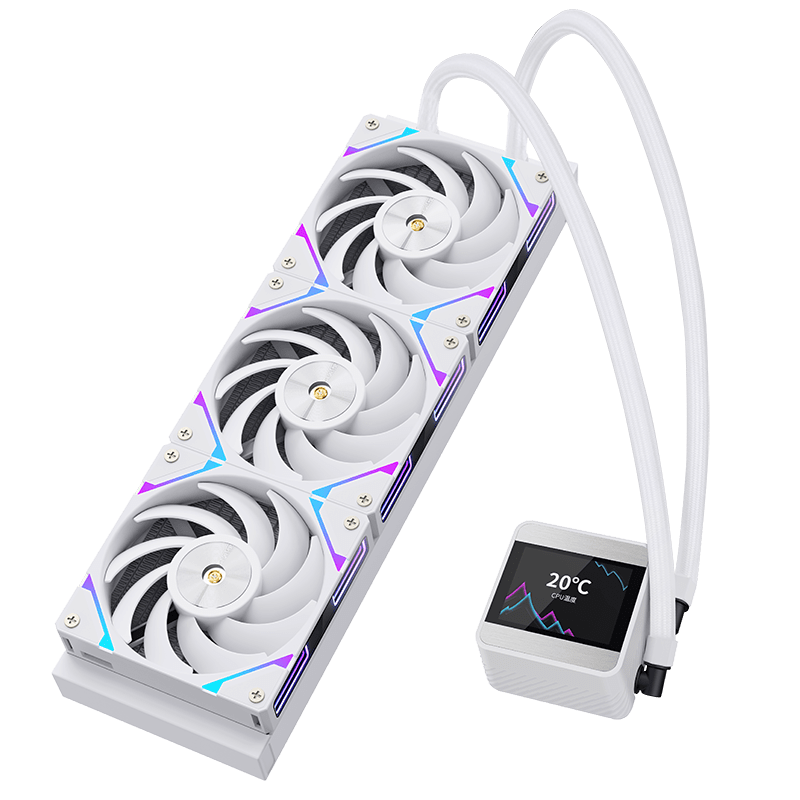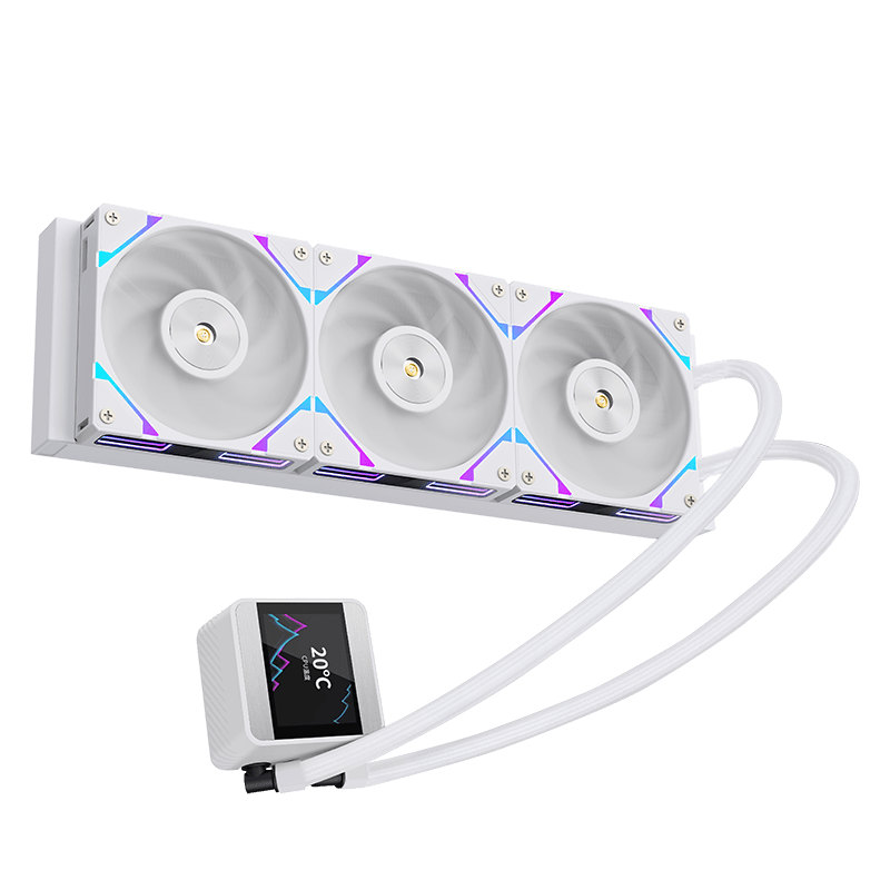 SEGOTEP MU360 Liquid Cooler White 360mm AIO with 2.4-inch IPS Digital Display, Modular ARGB Fans, EPDM Tubing, 9-Pole Pump, <320W TDP Support for Intel and AMD Platforms