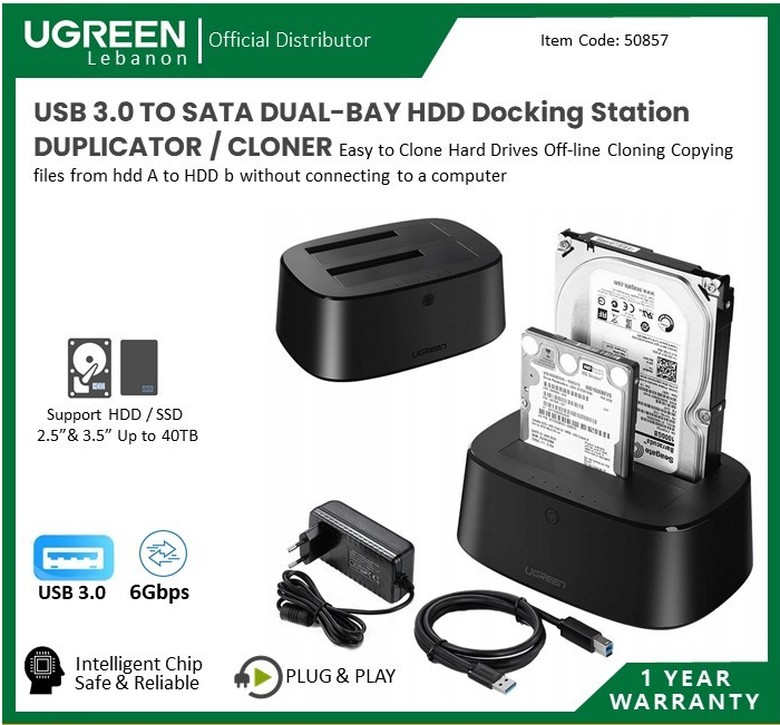 UGREEN USB 3.0 Dual Bay SATA Hard Drive Docking Station DUPLICATOR / CLONER – CM198