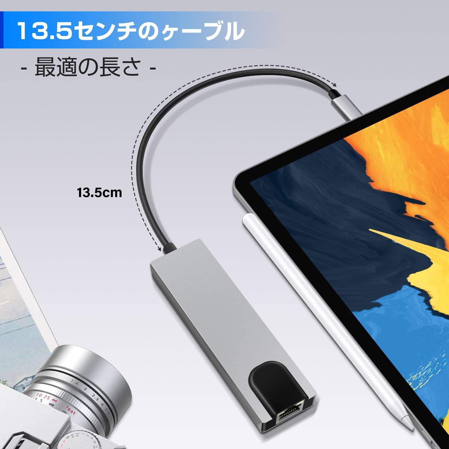 - 5-in-1 Multi-functional, 5.3 inches (13.5 cm) Length: This product features 4K @ (3840 x 2160P) 30Hz HDMI port, 1 Power Delivery compatible Type-C port, 1 Ethernet LAN port, 2 USB 3.0 ports. The ideal length of 13.5cm means you don’t have to worry about the cable being too long to be too dull or too short to use