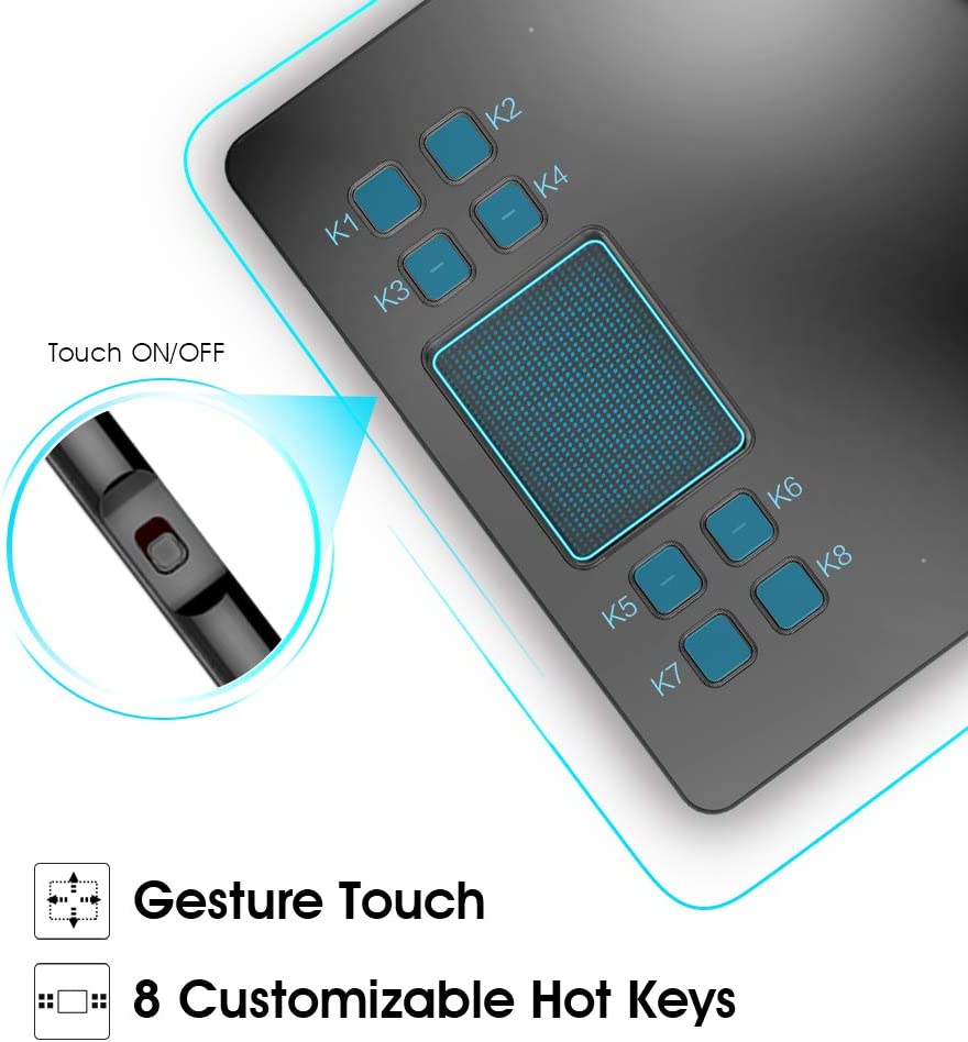 - Smart Gesture Touch & Easy Touch Keys: Easily zoom in and out the picture, to left or right adjust the brush size